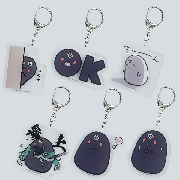 アクリルキーホルダー。デザインは基本的に缶バッジと一緒で、闇の精霊なら6種類、ラッコ・パプーは3種類となっている。