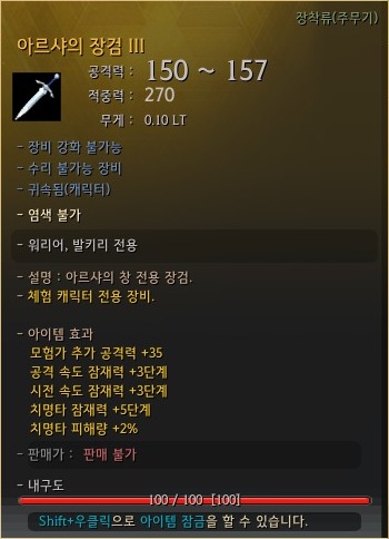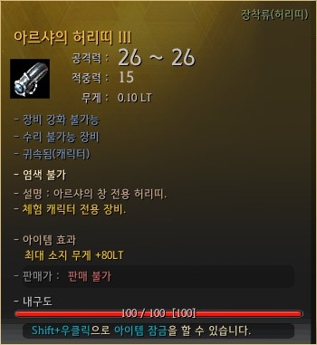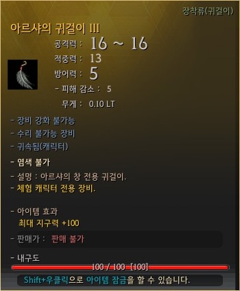 - 体験キャラクターで獲得できるアルシャ装備IIIが発売されました。