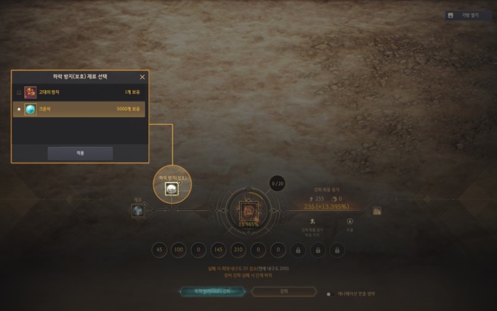 - 強化を進めるボタンが「下落防止(保護)強化」と「強化」に分離され、「強化」ボタンは下落防止保護材料を登録しなかった場合のみ活性化されます。