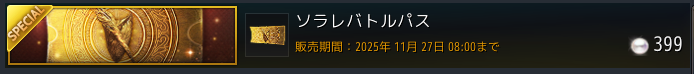 2025年10月23日(木)メンテナンス後から2025年11月27日(木)メンテナンス前まで、3vs3のPvPコンテンツ「ソラレの闘技場」の新シーズンが開始となった。