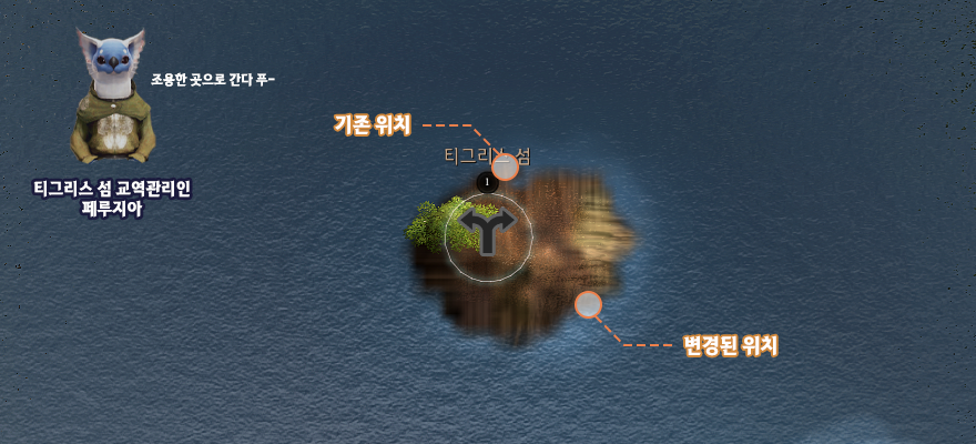 - ティグリス島貿易管理人ペルージアが最近、ティグリス島で釣りをする人々が忙しく集まったので、島の静かな場所に住居を移しました。