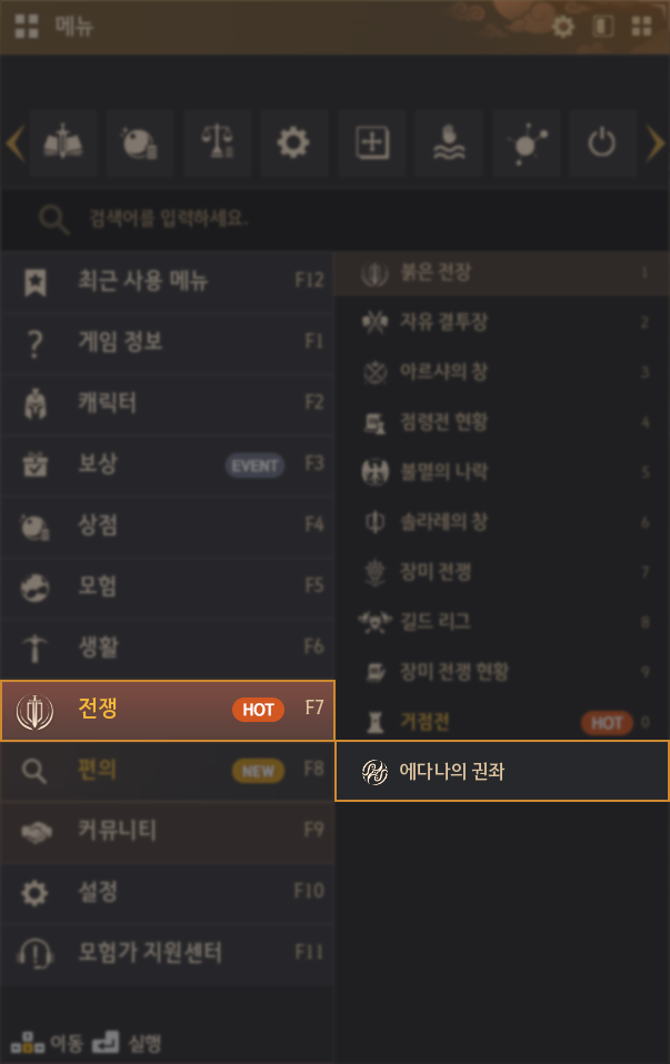 - メニュー(ESC) - 戦争(F7)からエダナの王位UIを開くことができるように追加されました。