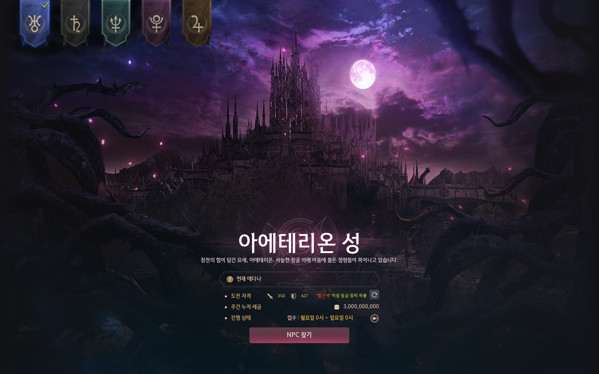 この状況を改善するために未参加のペナルティを追加しました。冒険者皆さんは挑戦の証を店に販売することができるように設定しました。また、特定の城のエダナの王位に上がった冒険者が、上位のエダナの王位にも挑戦する資格が十分な場合、このような挑戦を推奨するための変更点が訪れます。