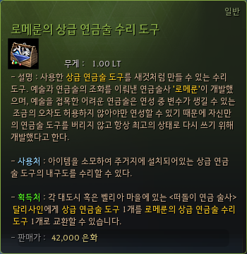 -舞い上がる弘益の火種17~20個 -記憶の破片8~15個 -常平通宝104~110個 -ブラックストーン38~44個 -封印された黒魔力水晶5個 -不完全な火の光明石 -自然の痕跡10~17個 -夜明けの精髄18~19個 -稲妻の痕跡(正1品戦利品開封時) -金塊1kG2~3個 |