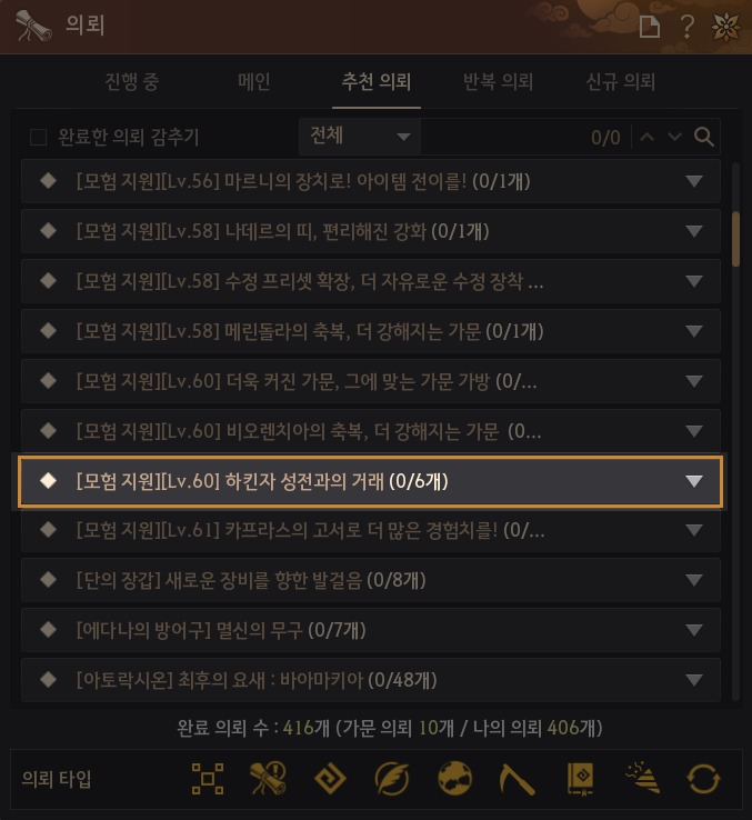 - ただし、当該依頼は一家一回だけ進行することができ、すでに'[イベント]ハキンザ聖殿取引の依頼を完了した場合は進行できません。