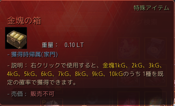 金塊の箱は確率獲得で、開けると金塊1kG~10kGが確率で手に入る。