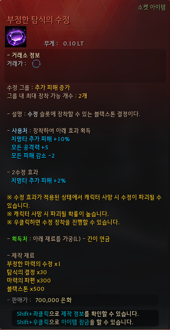 ![]() 腐敗したピットライト欠片(ショップ販売価格:155,000シルバー)