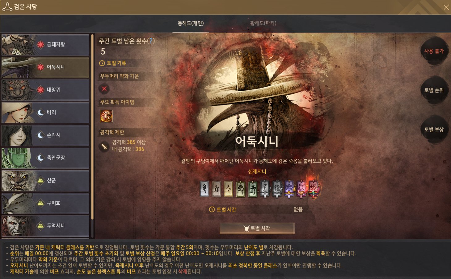 深い闇の中で力を取り戻した存在、オドゥクシニの黒い祠 八・九・十災シニが追加されました。新たに追加されたオドゥクシニは、以前にも増して不撓不屈の構えで戦場を圧倒します。特に、戦闘中に放たれるオーラを適切に誘導できない場合、瞬く間に戦況が不利になる可能性があります。東方海道の最終ボスとして、大倀鬼よりも高い最低攻撃力条件が設定されており、その分、討伐成功時に得られる戦利品も一部上方調整されています。より大きな力を携えて現れたオドゥクシニに立ち向かう冒険者の皆様のご活躍を期待しています。