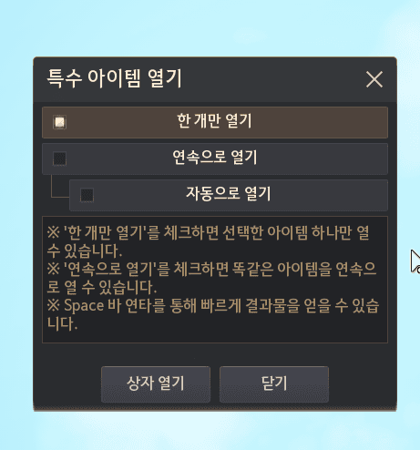 • 特殊アイテム開封UIで「自動で開封」ボタンをクリックしても「連続で開封」ボタンが同時に有効化されるよう改善されました。