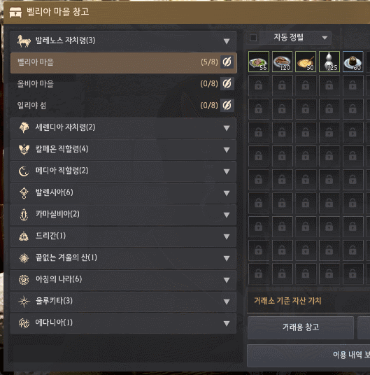 - ワールドマップ(M)で見る倉庫UIがリスト型に変更され、これにより他の村の倉庫とメモ確認が可能です。