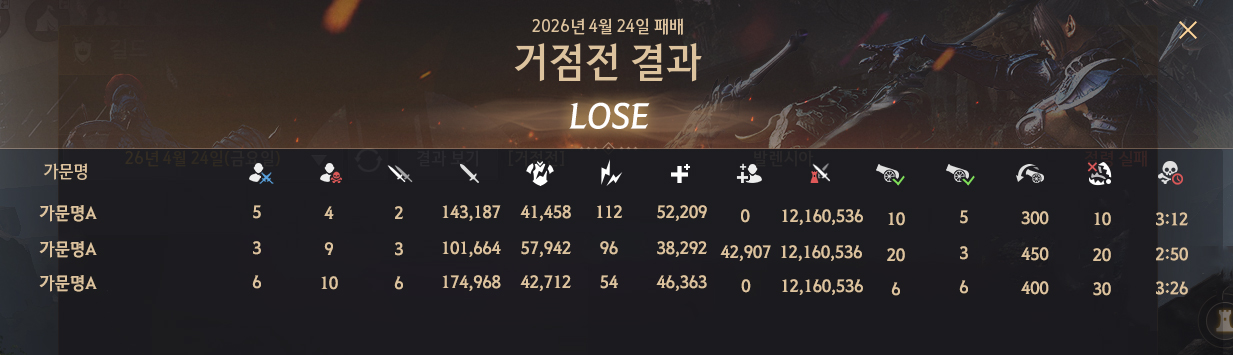 占領前家紋バフ(参加) 占領戦で敗北時または守城失敗時 占領戦参加ギルド(連盟)員