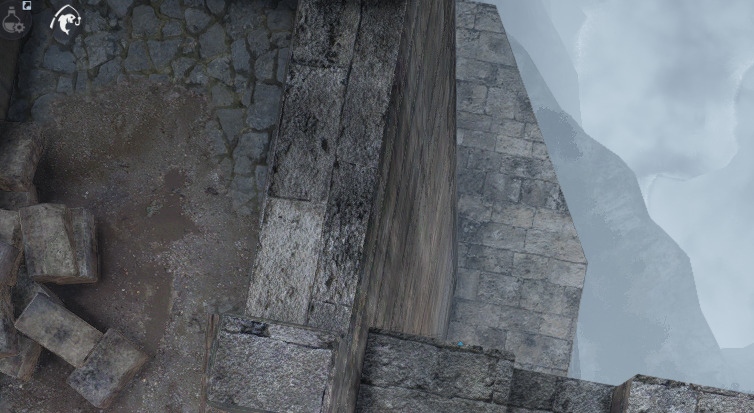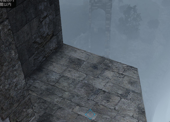 前方に見える窪み。この近くに行くと「行き止まりの壁」といったメッセージが出たと思います。2か所くらいメッセージが出る場所があります。