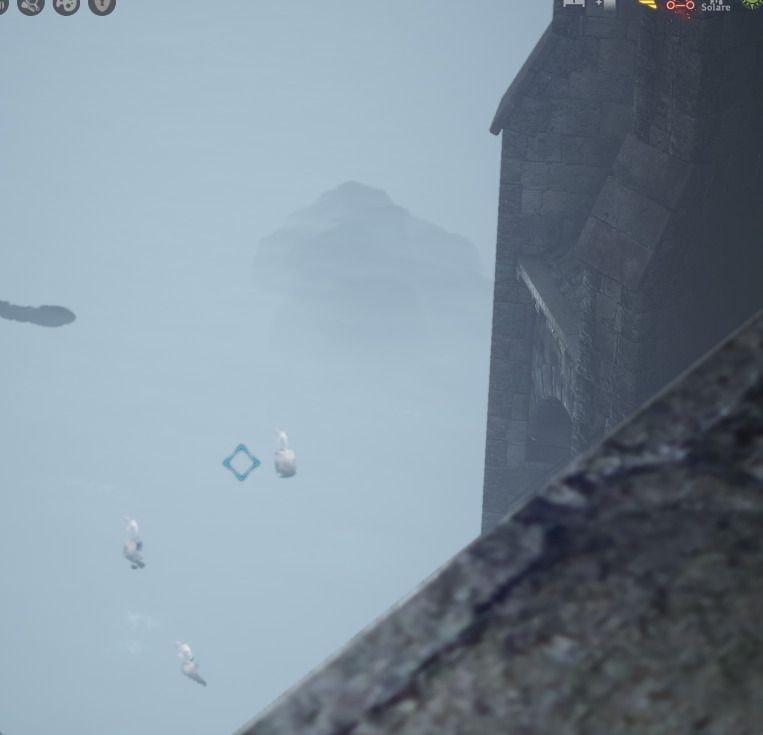 解像度を下げた状態で海を見ると、うっすらと白くターゲットが見えます。このあと、ターゲットに向かって大砲を撃ちますが、クリック長押しは30%くらいでいいようです。上に向かってではなく、筒を下げてターゲットに向けて撃ちます。当たらないときは、長押しの%を変えてみるといいかと思われます。