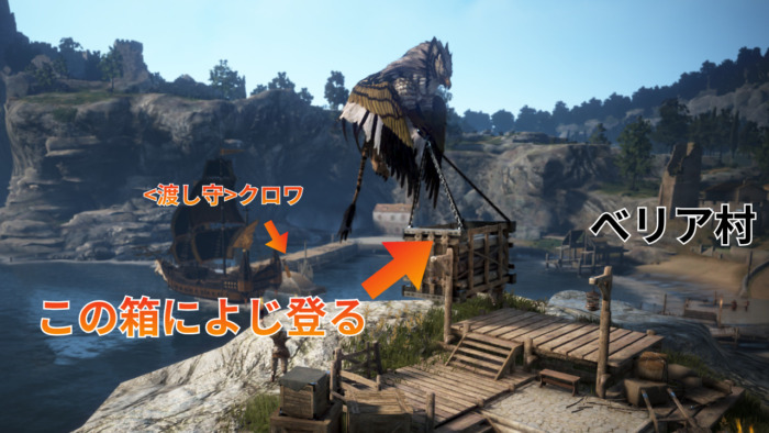 - ベリア村⇔イリヤ島を往来するグリフォンがべリア村の崖にやってくるのを待つ